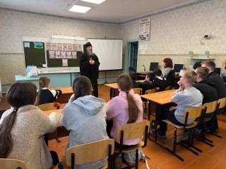 В день памяти великомученика Феодора Тирона 2 Марта в МБОУ «Афоньевская СОШ», состоялась встреча учеников со священником — настоятелем храма Георгия Победоносца в с. Афоньевка, иерем Александром Стороженко. Батюшка провел мероприятие посвященное первому Воскресению Великого поста — Торжеству Православия, на котором было рассказано о народно-церковных традициях и обычаях недели, её духовный смысл и содержание. Ученики со своей стороны подготовили вопросы по данной тематике и о посте вцелом. В конце беседы, ученикам и учителям, были розданы листовки миссионерского отдела. На листовках нанесен куар-код при сканировании которого можно перейти на сайт Миссионерского отдела и подробно ознакомиться информацией на данную тему и многие другие. Мероприятие закончилось совместным фото.
